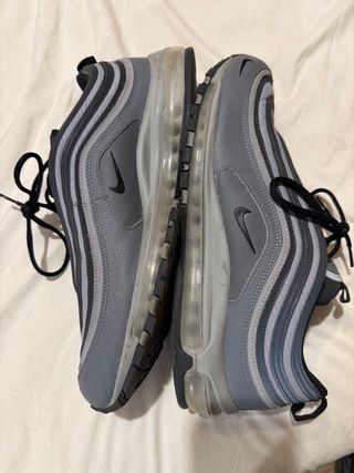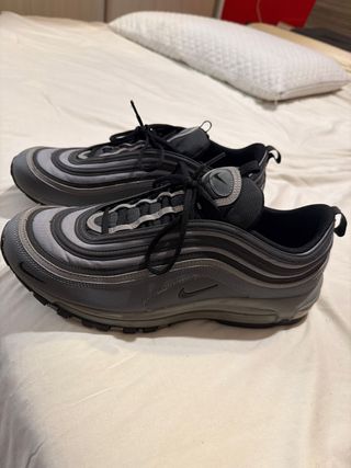 Scarpe Nike Air Max 97 in ottime condizioni, quasi nuove. - Design con linee ondulate iconiche. - Tomaia in tessuto e pelle. - Suola ammortizzata.