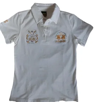 Polo da donna del marchio La Martina, colore bianco. La taglia è XL ma veste piccola, come una S. Per misure chiedere. - Logo ricamato sul petto. - Dettagli ricamati sulle maniche. - Colletto classico con bottoni.