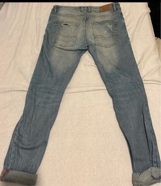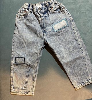 Pantaloni in denim Zara per bambino/a con un particolare lavaggio stone. Presentano dettagli a toppa che aggiungono un tocco unico. - Design con lavaggio stone. - Dettagli a toppa applicati. - Vita elasticizzata per maggiore comfort.