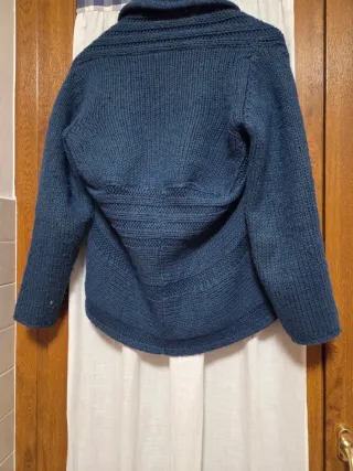 Maglioncino leggero con scollo rotondo e dettagli metallici. Taglia M colore blu in buono stato - Chiusura frontale con bottoni. - Maniche lunghe. - Orlo a costine.