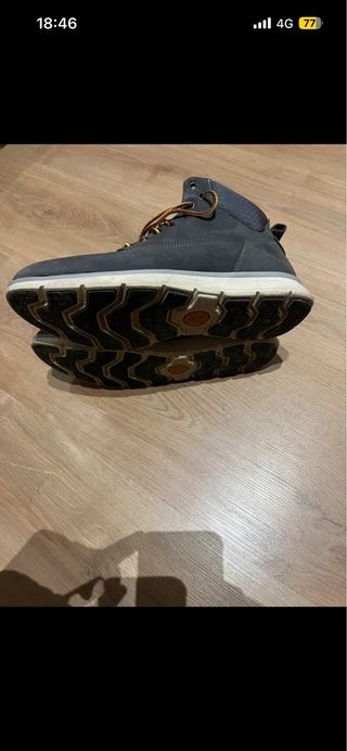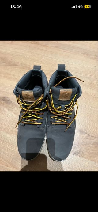 Stivaletti Timberland in pelle scamosciata, perfetti per un look casual. - Tomaia in pelle scamosciata grigia. - Dettagli in pelle marrone. - Lacci bicolore (giallo/marrone). - Logo Timberland impresso sulla linguetta.
