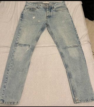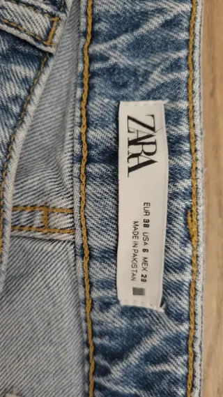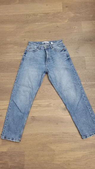 Pantaloni in denim Zara. - Vestibilità comoda. - Effetto lavato. - Design a vita alta.