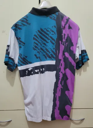 Maglia polo Nike da uomo, modello Andre Agassi Challenge Court. Mi si è staccata l'etichetta nell uso - Design colorato con pannelli astratti. - Logo Nike ricamato sul petto. - Colletto classico con chiusura a bottoni.