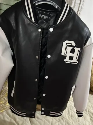 Giacca stile college con maniche bianche e corpo nero. - Logo CH sul petto. - Chiusura con bottoni a pressione. - Polsini e fondo a costine con strisce. - Tasche laterali. - Fodera interna trapuntata.