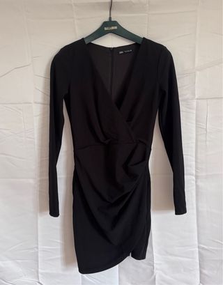 Elegante vestito Zara con maniche lunghe e dettaglio drappeggiato. - Scollo a V. - Tessuto morbido e confortevole. - Vestibilità aderente.