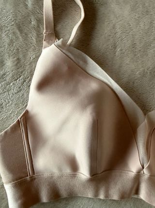 Reggiseno Chantelle color beige, con un design elegante e raffinato. - Tessuto morbido e confortevole. - Spalline regolabili. - Dettagli in pizzo. E’ un modello senza imbottiture, senza ferretto e senza cuciture. Molto comodo e avvolgente, ha la parte centrale rifinita in tulle. Lateralmente ha il logo in grigio/argento. Ha le spalline regolabili e con aggancio per essere indossato anche unite. Chiusura posteriore a 4 posizioni. Taglia: S Il reggiseno e' nuovo, con cartellino. Il suo prezzo e’ di 50€