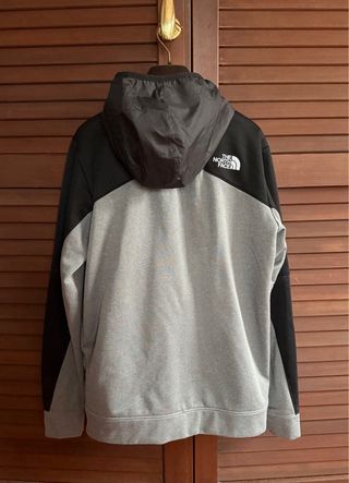 Felpa con cappuccio The North Face. - Design bicolore con pannelli grigi e neri. - Logo The North Face sul petto. Ha due tasche sul davanti e il cappuccio in tessuto nylon impermeabile. Modello unisex La taglia riportata sull'etichetta e' una XL Junior, ma veste come una S da uomo o una M da donna. Misure: spalle 41,5 cm. larghezza 49,5 cm. lunghezza 65 cm. maniche 61 cm. La felpa e' in ottime condizioni e senza difetti.