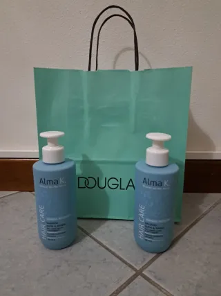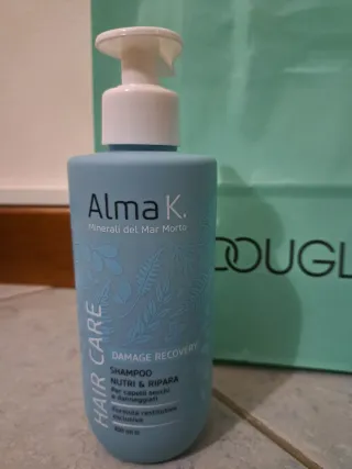 Set di shampoo e balsamo per capelli Alma K. - Flaconi da 250ml. - Linea Hair Care per il recupero dei danni.