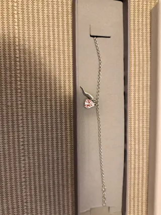Bracciale della marca FEELINGS, modello SFE17. - Realizzato in acciaio 316L. - Charm a forma di coccinella rossa con dettagli in zirconi. - Charm a forma di cornetto portafortuna argentato.