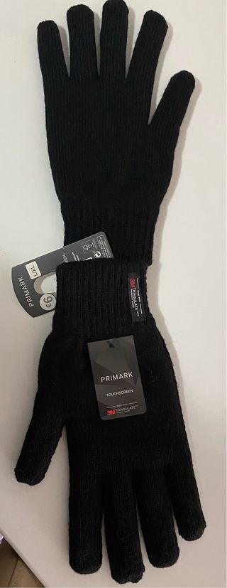 Guanti neri Primark con tecnologia Touchscreen. - Taglia L/XL. - Fodera interna in Thinsulate™ per un maggiore calore. - Polsino elasticizzato.