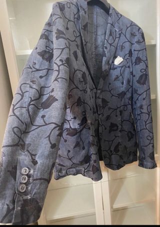 Giacca da uomo con una particolare fantasia floreale. Un capo dallo stile unico. - Fantasia floreale scura su base blu. - Tessuto leggero, ideale per la mezza stagione.