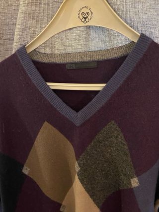 Pullover con classico motivo Argyle. - Scollo a V. - Maniche lunghe. - Tessuto morbido.