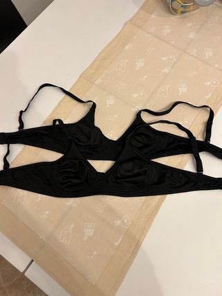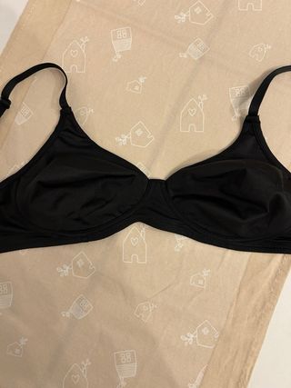 Reggiseno nero con spalline regolabili. - Tessuto liscio e confortevole. - Design a balconcino. Taglia ITA 3B, EUR 75B, FBL 90B, USA 34B
