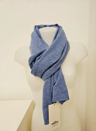 Morbida pashmina stola maxi sciarpa in lana merinos e cashmere, perfetta per aggiungere un tocco di eleganza e di luce. - Tinta unita azzurra. - Dimensioni 200x60 cm - Tessuto pregiato. - made in Italy - nuova con cartellino - completa di custodia con zip
