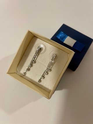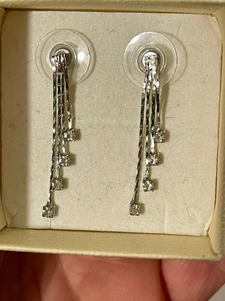 Eleganti orecchini pendenti. - Design a cascata con cristalli luminosi. - Montatura in metallo argentato.