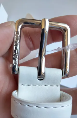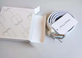 Bellissima cintura elastica, marca Baldinini, nuova con cartellino attaccato e confezione, perfetta idea regalo. Di colore bianco, dettagli nelle foto, lunghezza circa cm 94 ma è elastica quindi si allunga e si adatta. Altezza cm 2,50. Ha fibbia lucida di colore argento con scritta la marca.