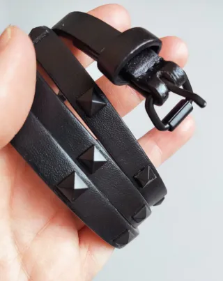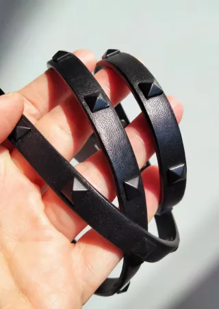 Cintura nera donna o ragazza, con piccole borchie nere in rilievo. Lunghezza cm 110, con fibbia nera e cinque buchi per regolarla. Comoda perché è bassa, infatti è alta solo 1 cm. Mai usata.