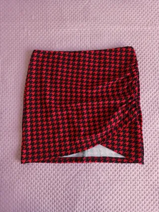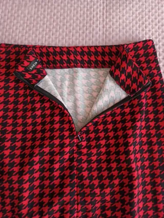 Minigonna fantasia pied de poule rossa e nera, chiusura con zip sul retro. Taglio aderente, con drappeggio che crea un effetto asimmetrico. Taglia L ➡️misure in ultima foto. In un paio di foto la indosso io per dare un'idea, ma non è della mia taglia.