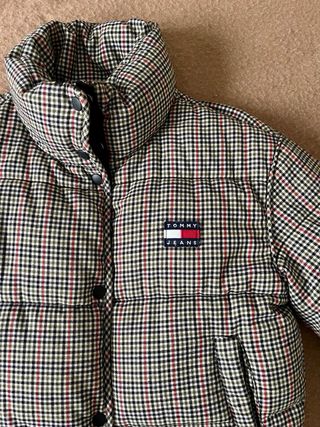 Giacca imbottita Tommy Jeans con un classico motivo a quadri. - Logo sul petto. - Collo alto. - Chiusura con cerniera e bottoni.