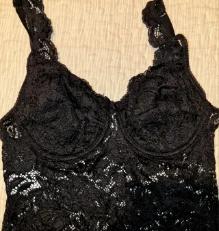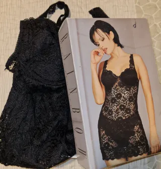 Elegante babydoll in pizzo nero Capo di lingerie nuovo. Mai Indossato, con Scatola (come da foto) Design a corpino rinforzato/con ferretto per un supporto e una vestibilità ottimale. Scollo profondo rifinito con bordo smerlato. Spalline sottili regolabili. Pizzo foderato sul seno e completamente trasparente sul corpo per un effetto vedo-non-vedo. Forma che esalta la silhouette.