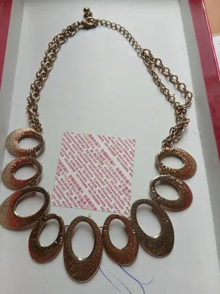 Elegante collana da donna con finitura dorata. Un accessorio che aggiunge un tocco di classe. - Design con maglie a forma di ovale. - Finitura martellata su alcuni elementi.