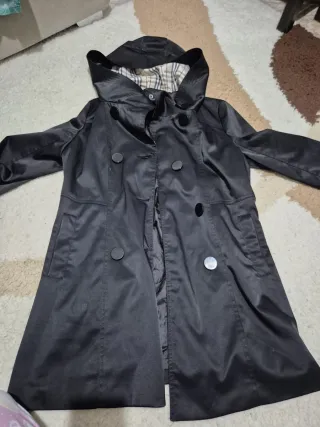 Trench nero con cappuccio