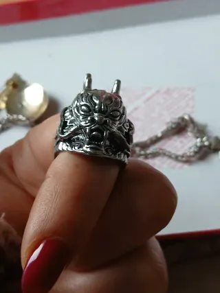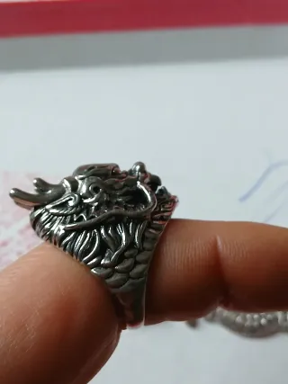 Anello in argento con un design dettagliato a forma di drago. - Dettagli intricati del volto del drago. - Design unico e audace.