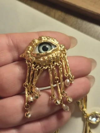 Spilla occhio dorato con perle e cristalli