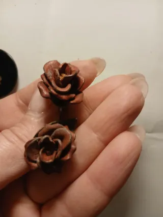 Coppia di orecchini a forma di fiore. - Design floreale unico. - Dettagli in verde e marrone.