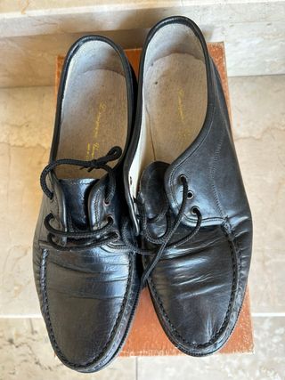 Scarpa tipologia stringata, conosciuta come “comodona” In Pelle Nera, made in Italy con suola in cuoio n.43 vestibilità ampia usata pochissimo da persona inferma, suola segnata solo nei punti di appoggio
