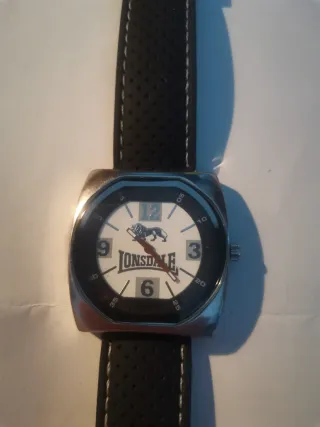 Orologio Lonsdale con cinturino nero e cassa argentata. - Cinturino in pelle nera con cuciture a contrasto. - Cassa rotonda in metallo argentato. - Quadrante bianco con logo Lonsdale.