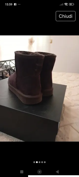 Stivaletti in camoscio marrone con interno in pelliccia. - Materiale esterno in camoscio. - Dettaglio interno in pelliccia sintetica. - Suola in gomma antiscivolo.