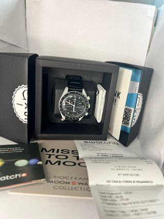 Orologio Swatch Bioceramic Mission to the Moonphase - New Moon. - Cassa in bioceramica. - Quadrante nero. - Cinturino in velcro nero.