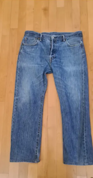 Jeans Levi's modello 501. Lunghezza alla vita cm 101 Lunghezza al cavallo cm 71 Larghezza vita cm 46 - Vestibilità classica. - Chiusura con bottoni. - Denim resistente.