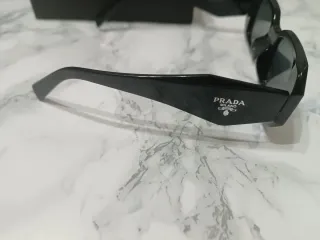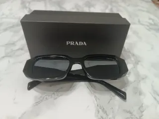 Eleganti occhiali da sole Prada, perfetti per completare il tuo look. - Montatura squadrata in acetato nero. - Lenti grigie sfumate. - Logo Prada inciso sulle aste.