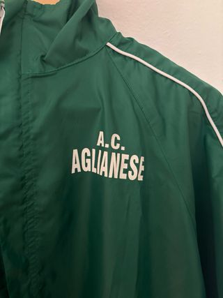 Giacca antipioggia con cappuccio firmata Errea. - Logo Errea sul petto. - Scritta A.C. Aglianese sul petto. - Inserti bianchi sulle maniche e sul colletto. - Tasche laterali. - Coulisse sul fondo.