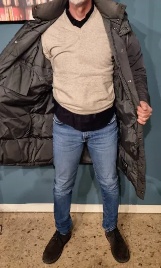 Elegante giubbotto parka da uomo ,imbottito di piuma d’oca del orestigioso brand Dekker. Con 4 tasche sul davanti in alto e in basso e abbottonatura con cerniera e bottoni. Taglia XL,usato ma ottimo stato. Ottimo prezzo