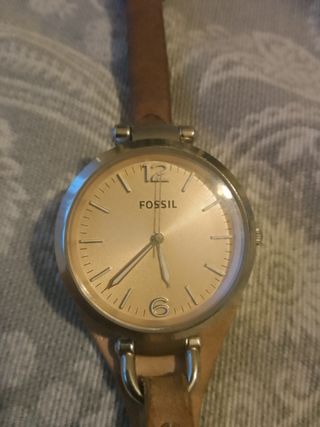Elegante orologio da polso Fossil con cinturino in pelle. - Cassa in metallo color oro. - Cinturino in pelle marrone. - Quadrante con indici e numeri. - Chiusura con fibbia.Non è come nuovo ma è in ottime condizioni più che in buono stato si vede dalle foto