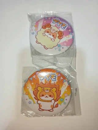 Set di 2 spille in metallo PuiMO. - Personaggio con tema pecora. - Personaggio con tema leone. - Diametro 6Cm.