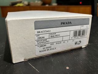 Bracciale uomo Prada originale 2IB286, colore blu baltico, pelle lavorazione saffiano. Vendo per inutilizzo, bracciale originale arrivato direttamente dalla fabbrica, dotato di cartellini di autenticità. Indossato solo due volte. - Colore: Baltico - Taglia: L - Made in Italy