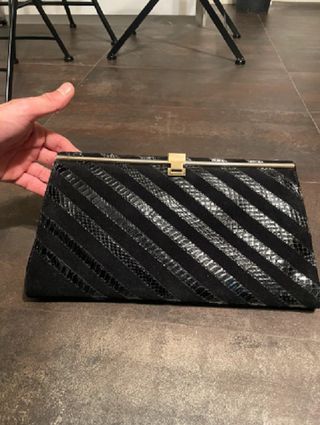 Pochette vintage nera. Cerniera interna rotta, per il resto in ottime condizioni. Dimensioni: 32x18 cm