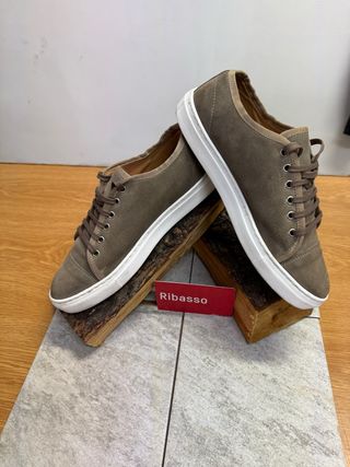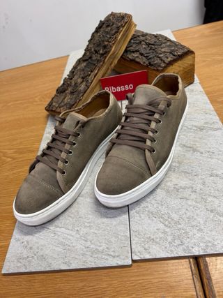 Eleganti scarpe da uomo in camoscio. - Materiale scamosciato. - Dettagli in contrasto. - Suola bianca.
