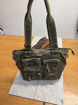 Borsa da donna in pelle, con un design pratico e capiente. - Materiale: vera pelle - Colore: marrone/verde oliva - Tasche esterne con zip e a filetto - Chiusura principale con clip e zip - Manici per portarla a mano o a spalla