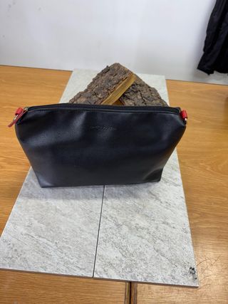 Elegante pochette firmata Karl Lagerfeld, perfetta per portare con te l'essenziale. - Materiale: similpelle testurizzata - Colore: nero - Dettagli: zip e tirazip rossi manca tracolla