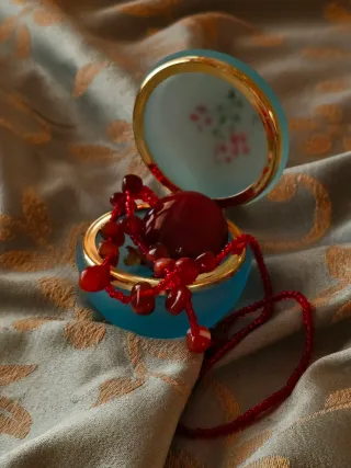 raffinato portagioie circolare a conchiglia, realizzato in vetro satinato (effetto "frosted") di una delicata tonalità azzurro polvere. Questo oggetto d'arte combina la delicatezza del vetro alla lucentezza dei dettagli metallici, rendendolo un pezzo da collezione o un elegante complemento d'arredo per la zona notte. In ottime condizioni generali Ideale per custodire anelli, orecchini o piccoli ricordi preziosi. Misure precise in foto Collana NON inclusa Prezzo trattabile. Sono disponibile per foto e informazioni ulteriori senza problemi. Scrivetemi! Se acquistate più articoli applicherò degli sconti!