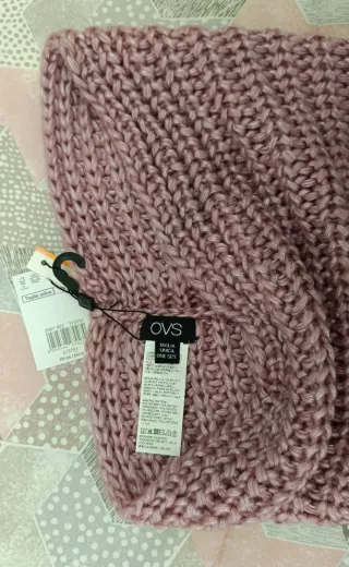 Scaldacollo in maglia color rosa, perfetto per aggiungere un tocco di calore e stile. - Lavorazione a maglia spessa. - Morbido al tatto.