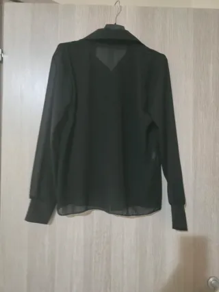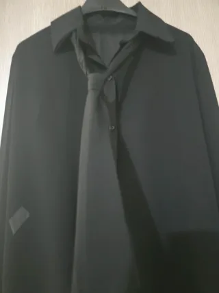 Camicia nera trasparente con cravatta inclusa. Un capo elegante e versatile. - Tessuto leggero e trasparente. - Collo classico. - Chiusura con bottoni. - Cravatta abbinata.