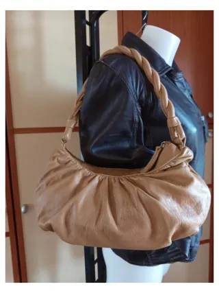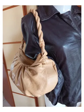 Borsa a spalla in vera pelle, creazione artigianale, in ottime condizioni,lieve e irrilevante difetto visibile in foto,misure sempre in foto.