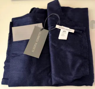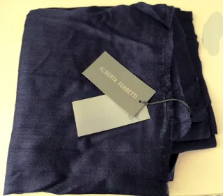 Vendo sciarpa originale Alberta Ferretti, nuova, mai uscita dalla sua busta. Come visibile dal cartellino in foto, il prezzo originale è di 119€ e il prezzo outlet è di 71€. La vendo a soli 60€ per realizzo immediato. È un prezzo inferiore a quanto pagato in outlet! Composizione: 85% Lana / 15% Seta. Colore: blu scuro elegante. Extra:include busta protettiva originale del brand. Ideale se cerchi un capo di lusso autentico a un prezzo imbattibile. No trattative, il prezzo è già un regalo. #albertaferretti #fashion #scarf #luxurybrand #outlet #occasione #lana #seta