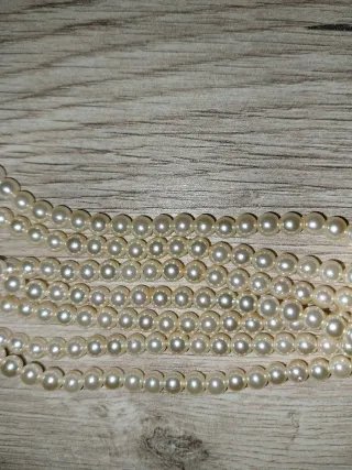 Elegante collana vintage multistrato con perle sintetiche e una chiusura a forma di conchiglia dorata. - Design multistrato. - Chiusura a incastro dorata. - Perle sintetiche lucide.